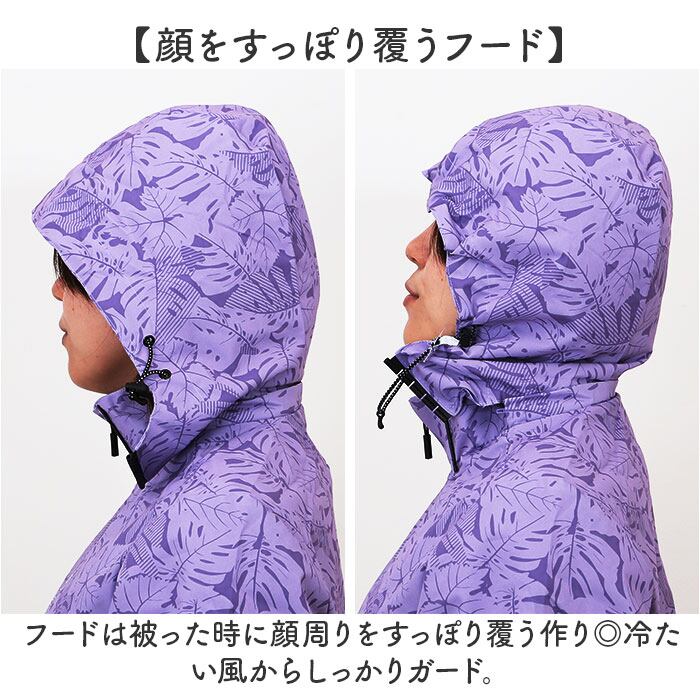 ・フードは被った時に顔周りをすっぽり覆う作り◎冷たい風からしっかりガード。