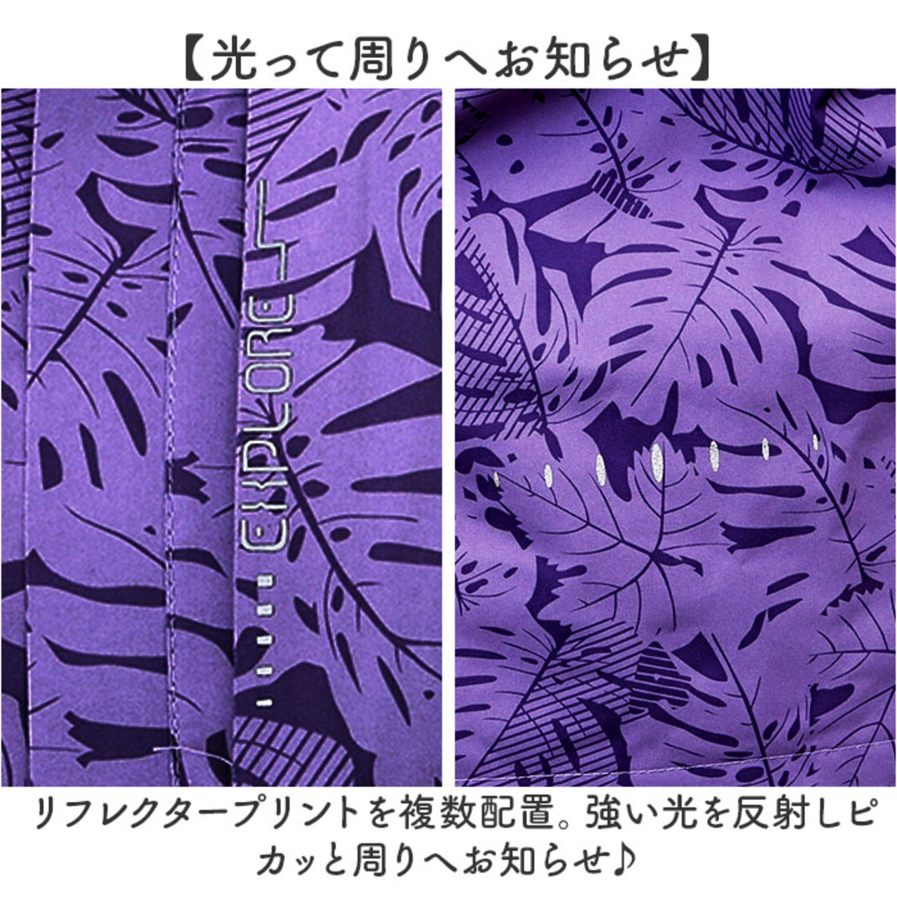 ・リフレクタープリントを複数配置。強い光を反射しピカッと周りへお知らせ♪