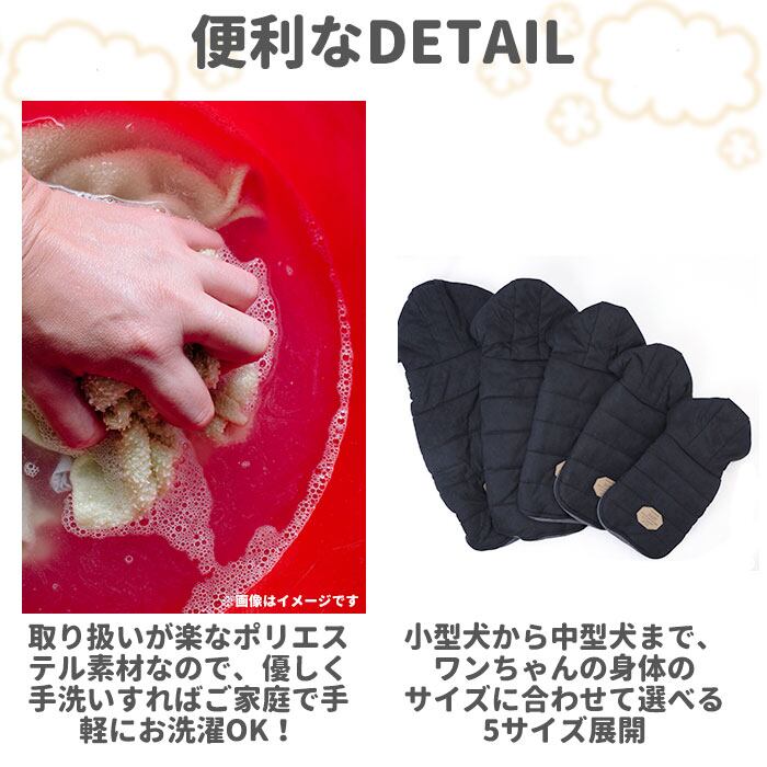 ※SサイズからXXLサイズまでの5つのサイズから、ぴったりサイズがチョイス可能!超小型犬から、胴回り50cm程度までの中型のワンちゃんに最適なサイズ感。小さなサイズはネコちゃんにもオススメ。