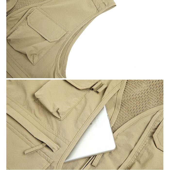 ・フロントにポケットを多数配置し、機能性抜群のベスト。