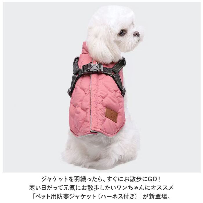 ・ジャケットを羽織ったら、すぐにお散歩にGO!寒い日だって元気にお散歩したいワンちゃんにオススメ「ペット用防寒ジャケット(ハーネス付き)」が新登場。