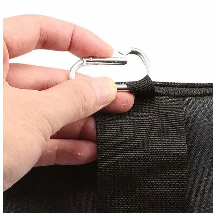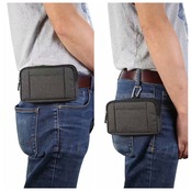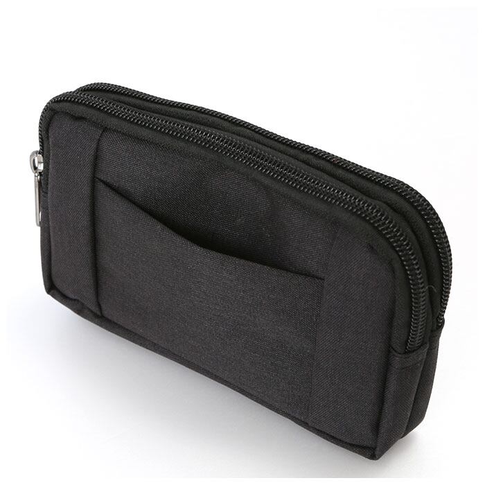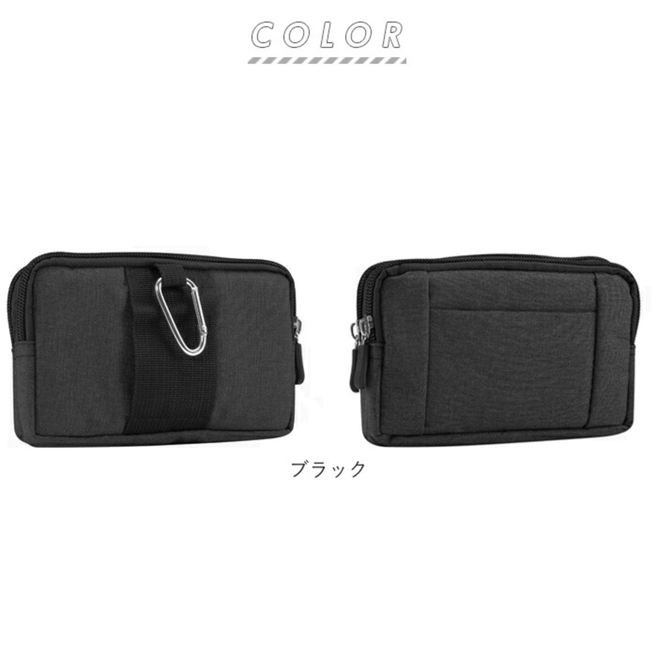 ・ベルト通しとカラビナフックが付いた2way装着が可能なウエストポーチ。大事な荷物を肌身離さず持ち歩くことができる。
