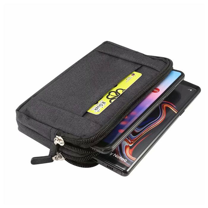 ・ファスナー式収納×2を装備。両側面が柔らかいクッション素材になっているので、スマホを傷から守ってくれる。