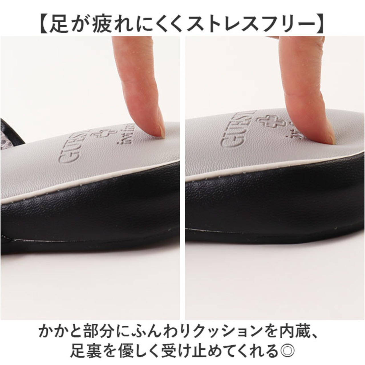 ・かかと部分にふんわりクッションを内蔵、足裏を優しく受け止めてくれる◎