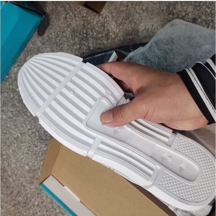 ・フラットでやや厚みのあるソール。凹凸を施した滑りにくい素材で、安定性も。