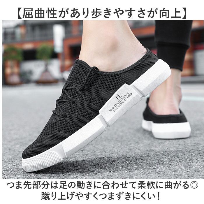 ・スリッパのように足入れできて、ラフなスタイルにマッチ。メンズ用かかとなし スニーカー。