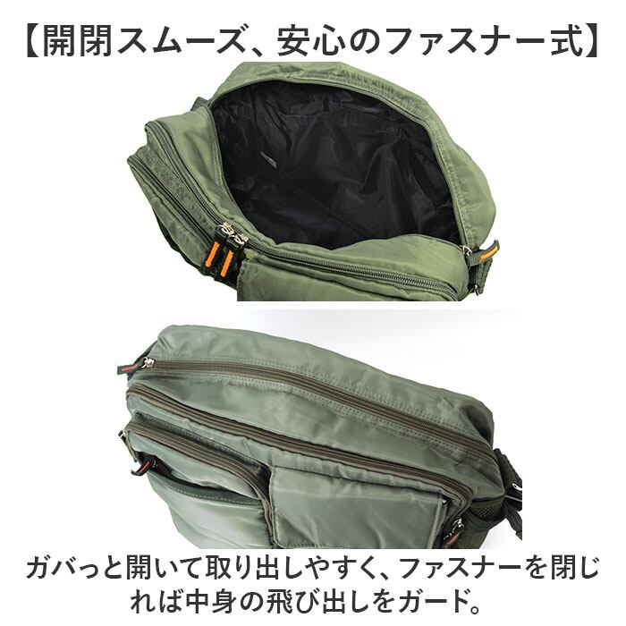 ・ガバっと開いて取り出しやすく、ファスナーを閉じれば中身の飛び出しをガード。