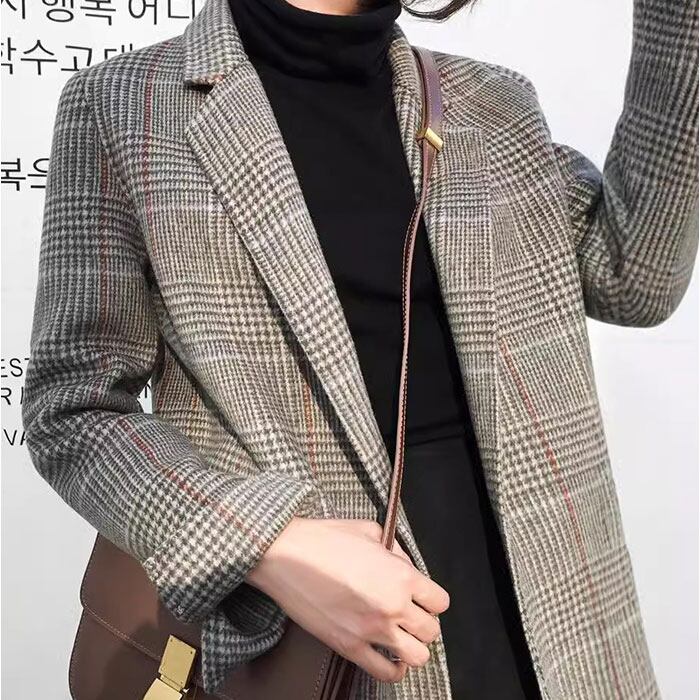 テーラードジャケット レディース 通販 テーラード ジャケット アウター コート 上着 長袖 羽織り グレンチェック オフィスカジュアル ビジネスカジュアル シンプル おしゃれ 通勤 秋冬 春秋 オーバーサイズ ショート丈 女性 レディースファッション