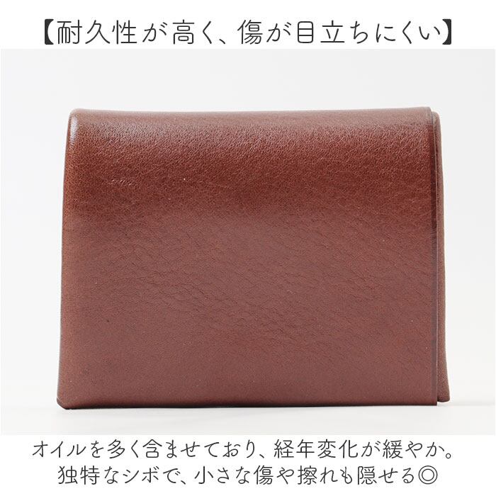 ・オイルを多く含ませており、経年変化が緩やか。独特なシボで、小さな傷や擦れも隠せる◎