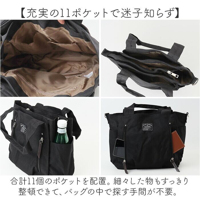 ・合計11個のポケットを配置。細々した物もすっきり整頓できて、バッグの中で探す手間が不要。
