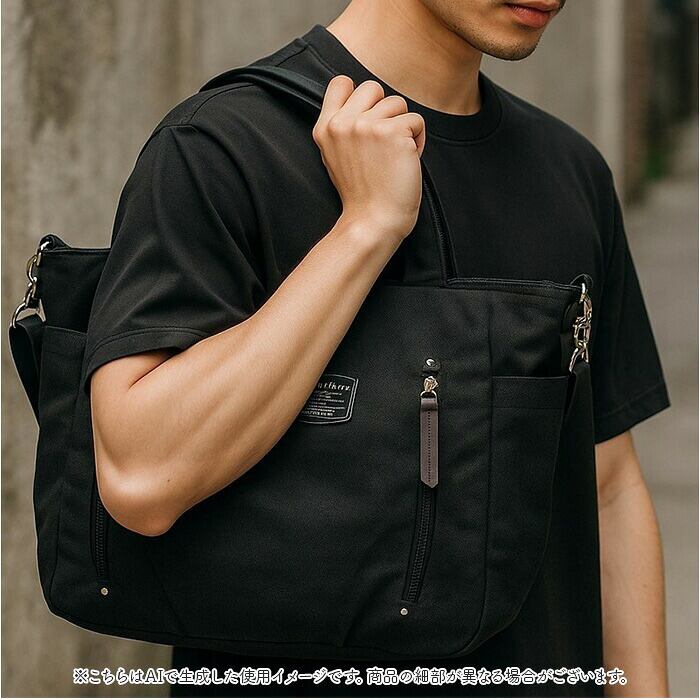 ・短いハンドルを使ってトート使い。長さ調節可能なショルダーを取り付け、肩掛けや斜め掛けも!