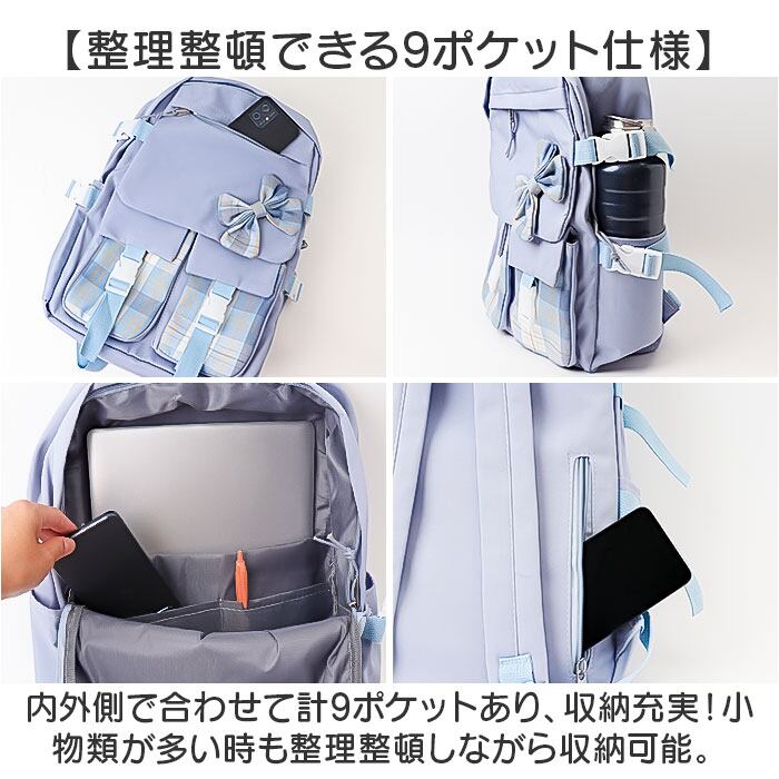 ・内外側で合わせて計9ポケットあり、収納充実!小物類が多い時も整理整頓しながら収納可能。