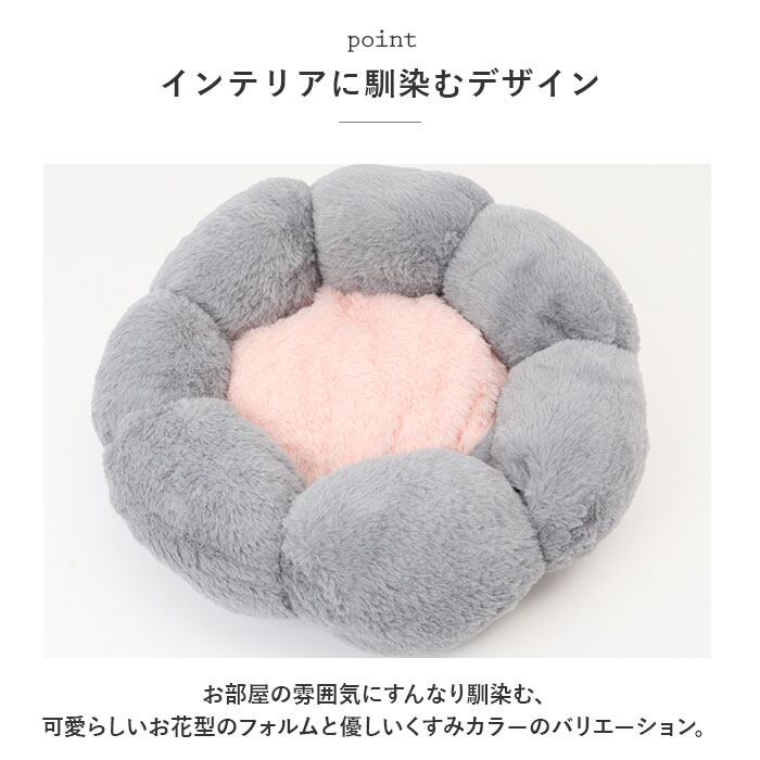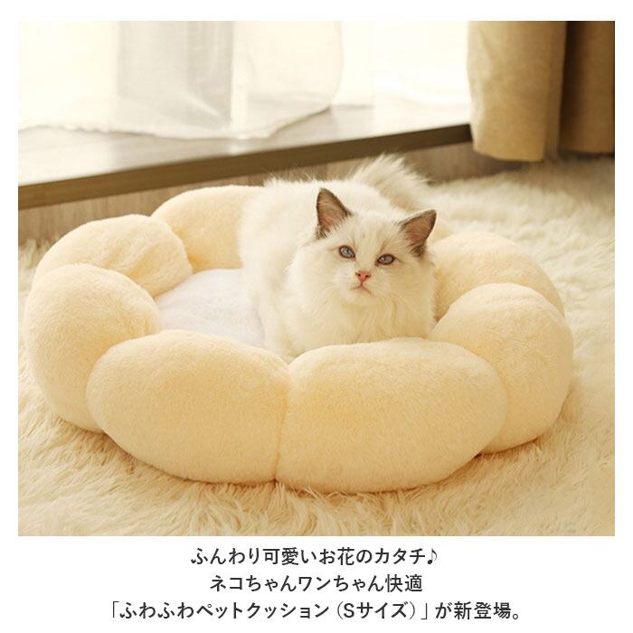 ・ふんわり可愛いお花のカタチ♪ネコちゃんワンちゃん快適「ふわふわペットクッション(Sサイズ)」が新登場。