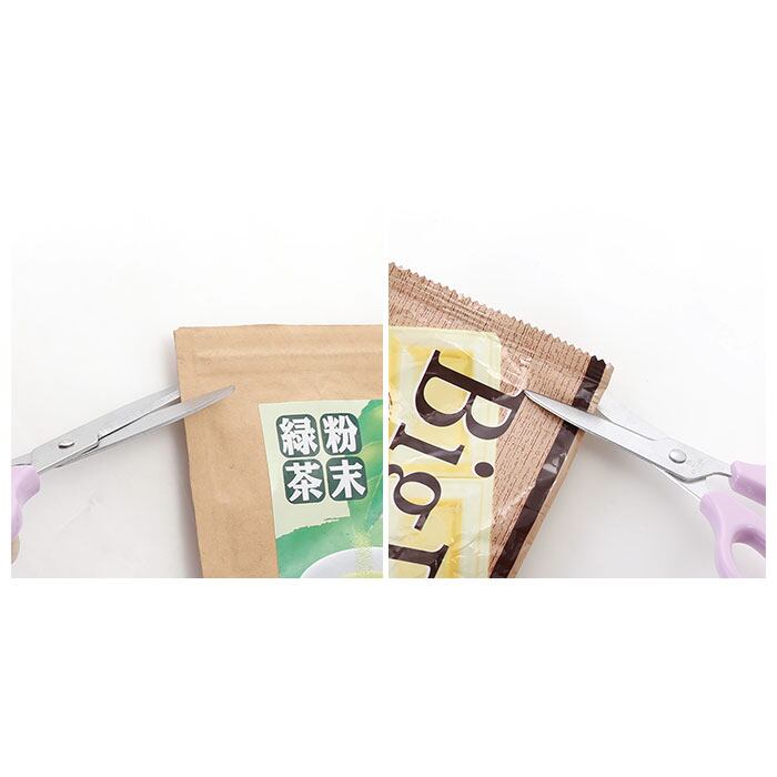 ・キッチンはさみは小さな手でもしっかり握れて刃を開く事ができるお子様グリップ設計。食材が滑らずに切れるギザギザ刃搭載。