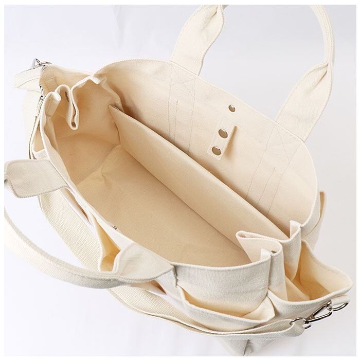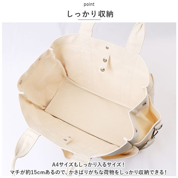 ・コットンキャンバス生地でしっかりとした作り◎バッグが自立するのも嬉しいポイント♪