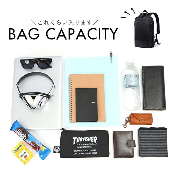・ノートPCなどを収納しやすく、満員電車などの人混みでも邪魔になりにくい!スリムなスクエア型。