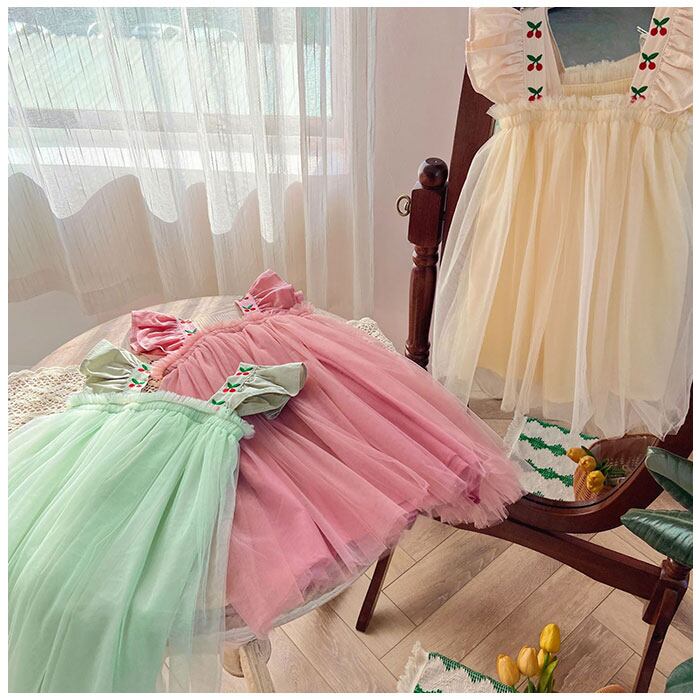 ベビー キッズ チュールドレス チェリー刺繍 ybbdress5098
