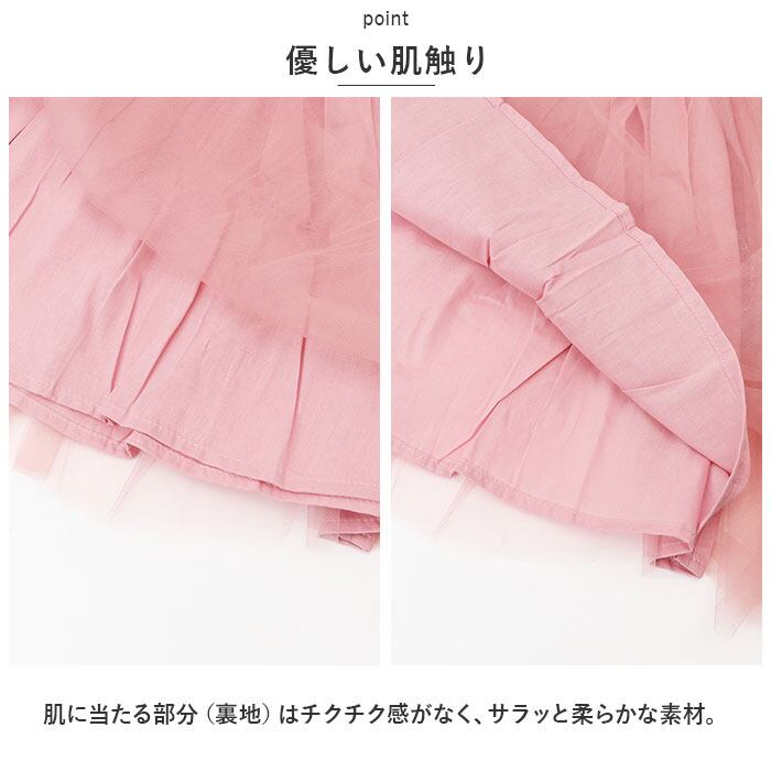 ・チュール生地を重ね、ふわっとボリュームのある仕上がりに。