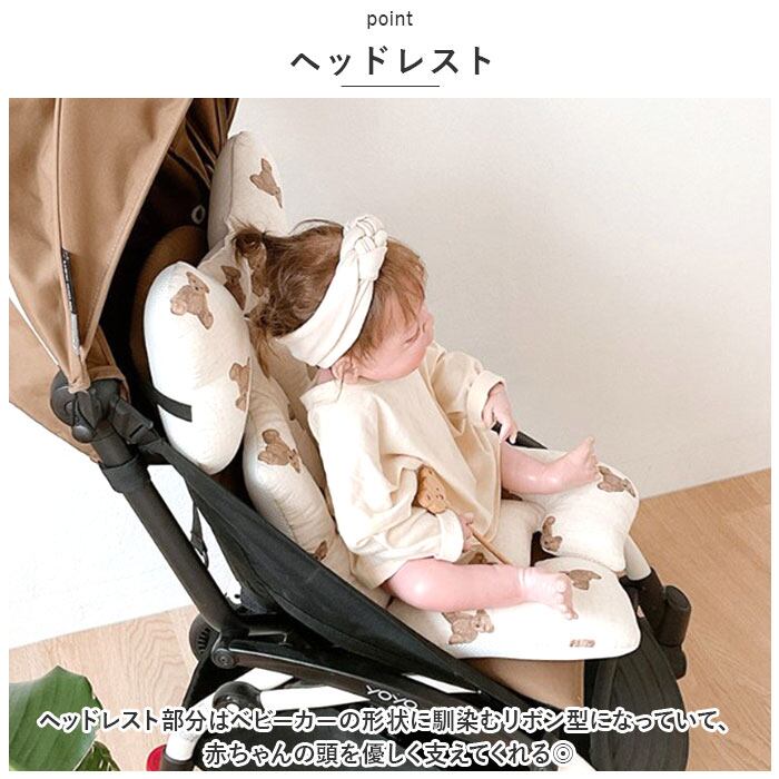 ・ヘッドレスト部分はベビーカーの形状に馴染むリボン型になっていて、赤ちゃんの頭を優しく支えてくれる◎