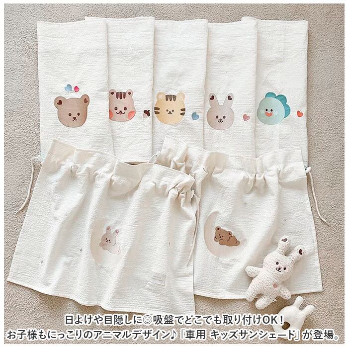 ・日よけや目隠しに◎吸盤でどこでも取り付けOK!お子様もにっこりのアニマルデザイン♪「車用 キッズサンシェード」が登場。