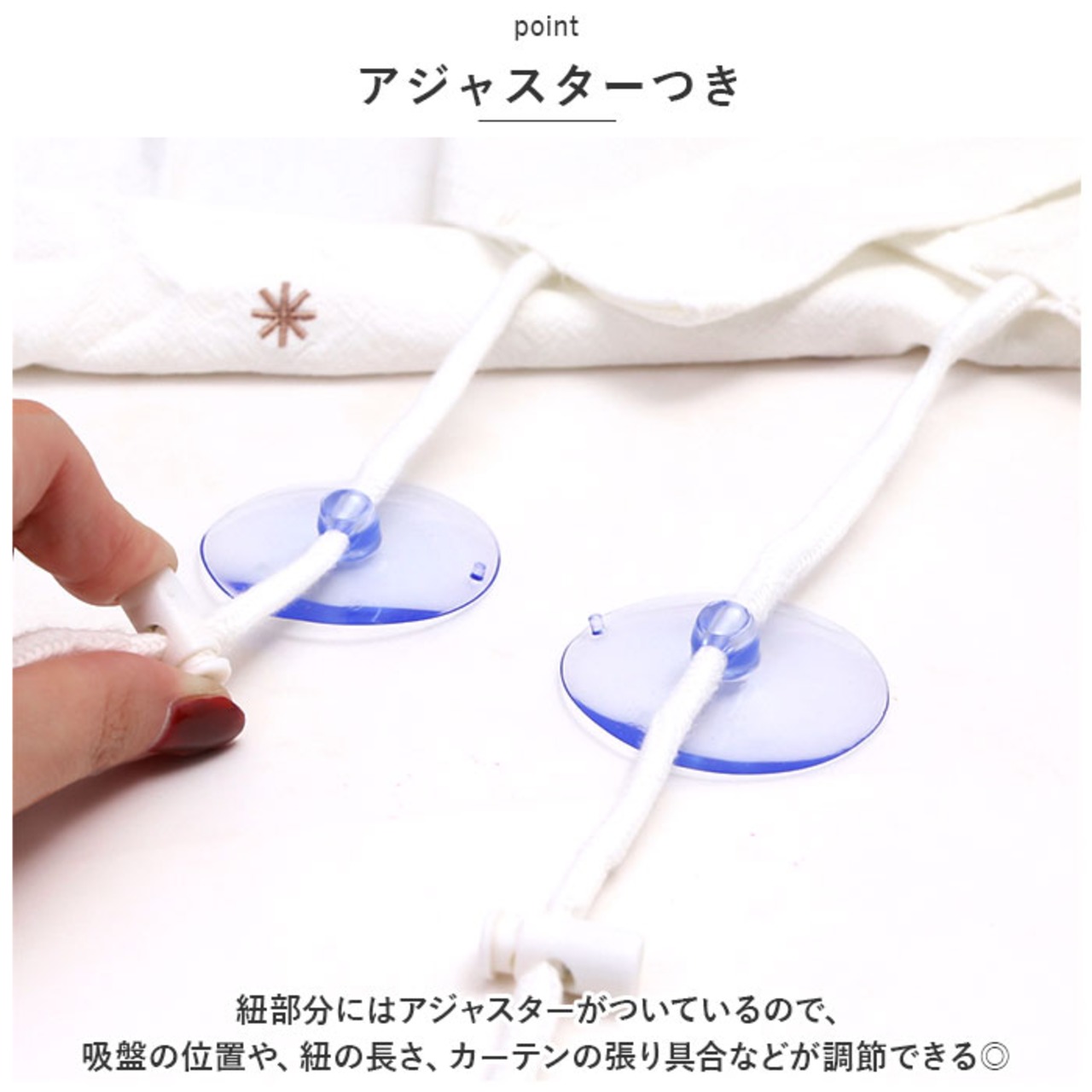 ・紐部分にはアジャスターがついているので、吸盤の位置や、紐の長さ、カーテンの張り具合などが調節できる◎