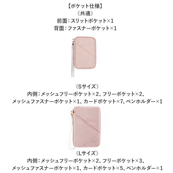 ・コンパクトなSサイズ、少し大きめのLサイズ。どちらもカバンに入れやすいスリム仕様。お好みや用途に合わせてチョイス!