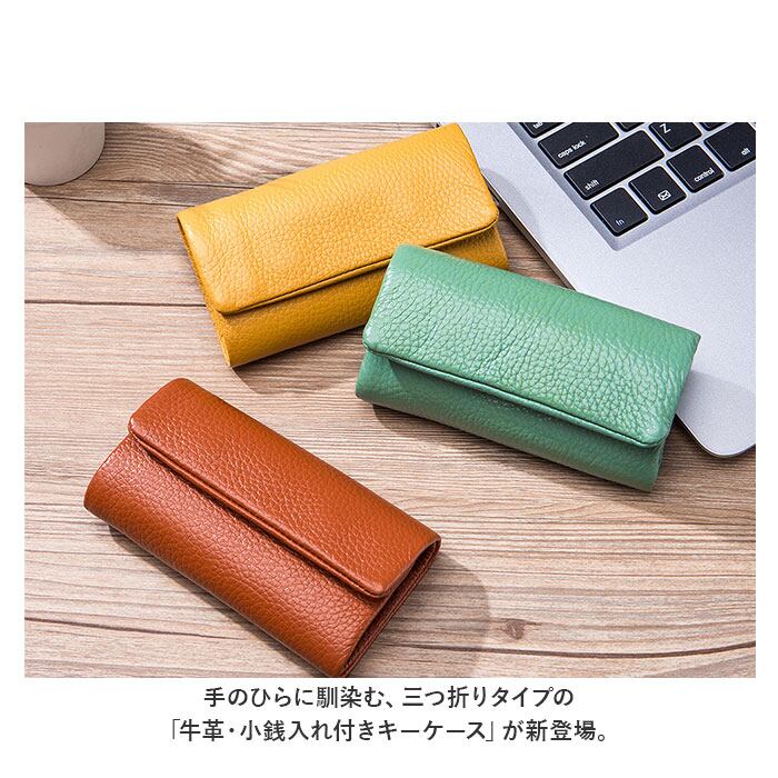 ・手のひらに馴染む、三つ折りタイプの「牛革・小銭入れ付きキーケース」が新登場。