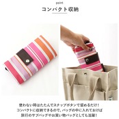 ・使わない時はたたんでスナップボタンで留めるだけ!コンパクトに収納できるので、バッグの中に入れておけば旅行のサブバッグやお買い物バッグとしても活躍!
