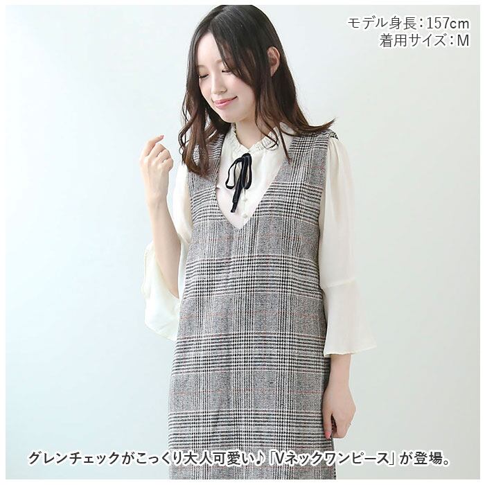 ・グレンチェックがこっくり大人可愛い♪「Vネックワンピース」が登場。