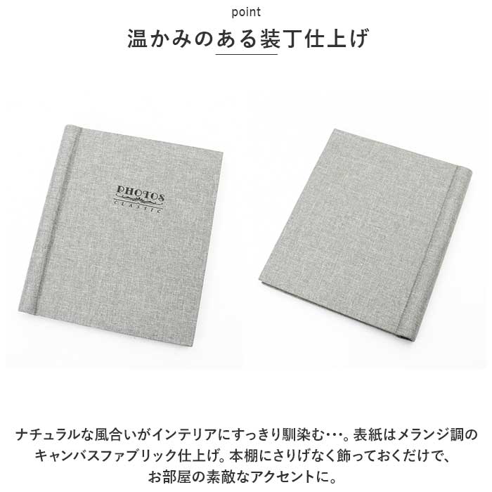 ・ナチュラルな風合いがインテリアにすっきり馴染む・・・。表紙はメランジ調のキャンバスファブリック仕上げ。本棚にさりげなく飾っておくだけで、お部屋の素敵なアクセントに。