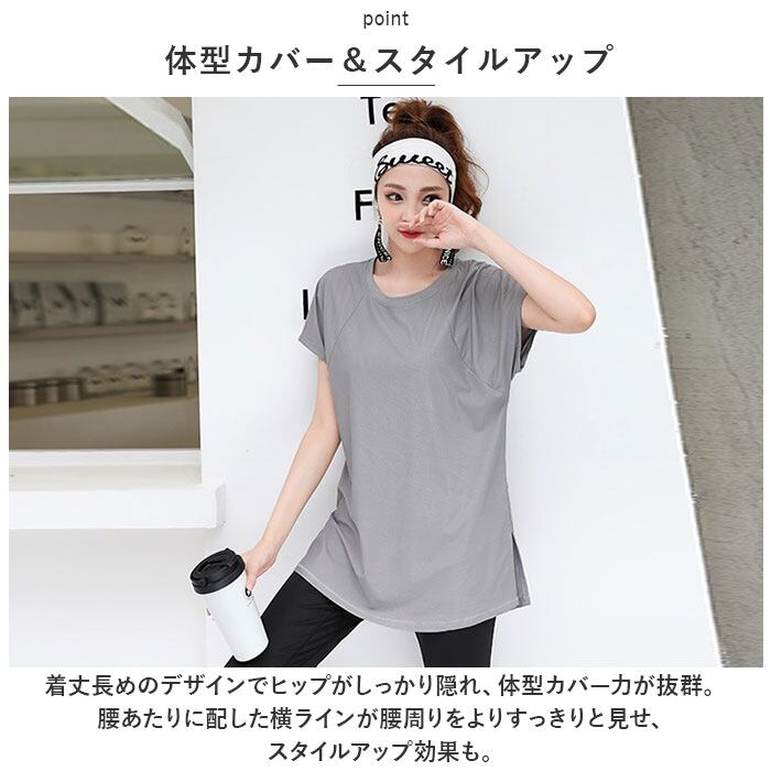 ヨガウェア スポーツウェア トップス Tシャツ 体型カバー ygw026