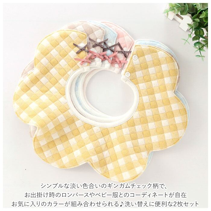 ・ふんわり可愛いお花のカタチ。赤ちゃんに優しい「ベビースタイ2枚セット」。