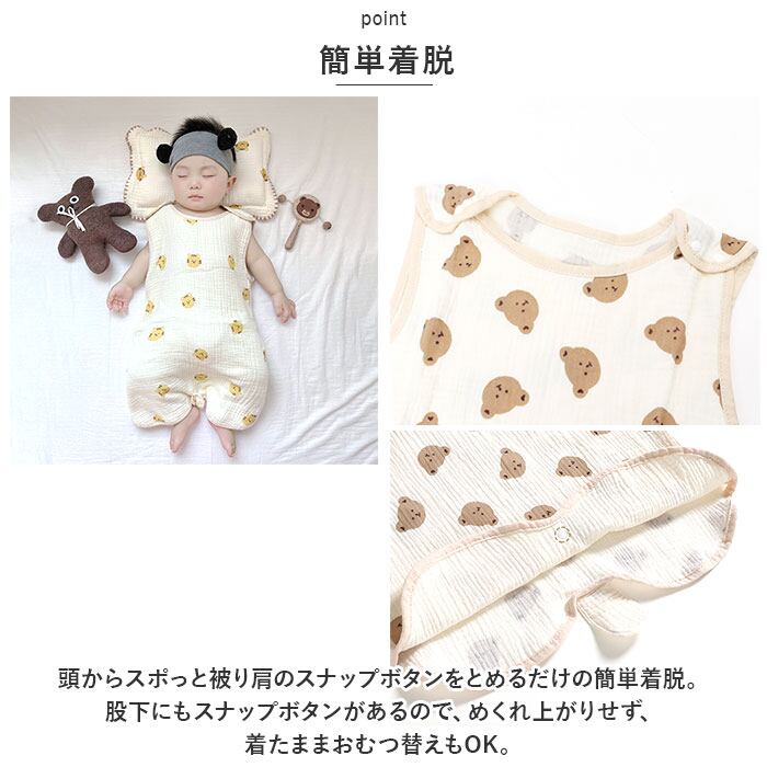 スリーパー ガーゼ ベビー 通販 ガーゼスリーパー ベビースリーパー 春 夏 春夏用 赤ちゃん キッズ 子供 寝冷え防止 エアコン対策 お昼寝 吸水 速乾 幼稚園 保育園 薄手 パジャマ 寝巻 部屋着 ボタン かわいい