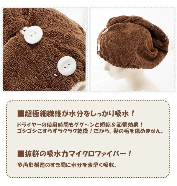 超極細繊維が水分をしっかり吸水するので、ドライヤーの使用時間も短縮&節電効果!ゴシゴシこすらずラクラク乾燥!だから、髪の毛を傷めません。