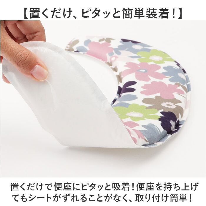 ・置くだけで便座にピタッと吸着!便座を持ち上げてもシートがずれることがなく、取り付け簡単!