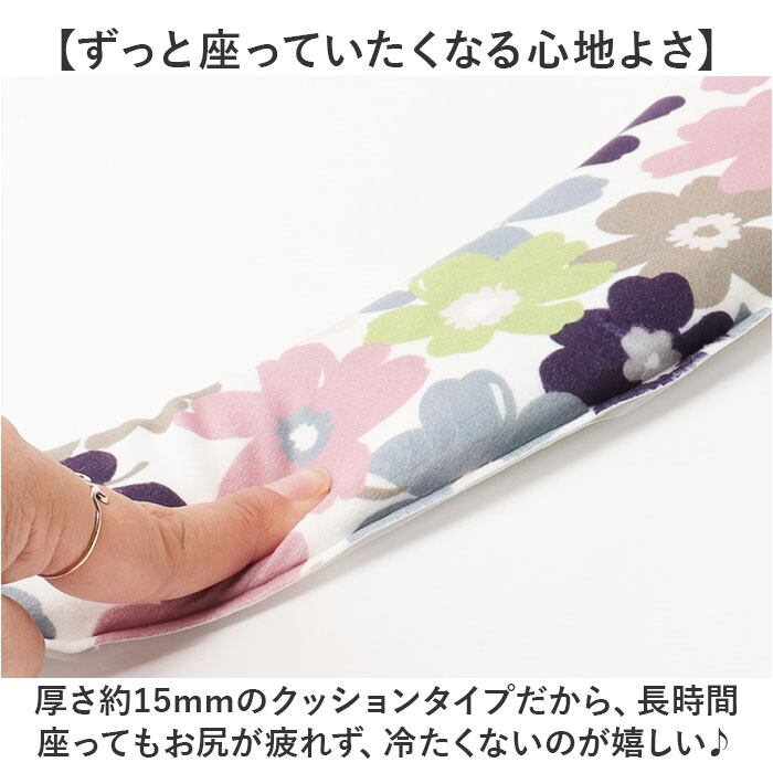 ・厚さ約15mmのクッションタイプだから、長時間座ってもお尻が疲れず、冷たくないのが嬉しい♪