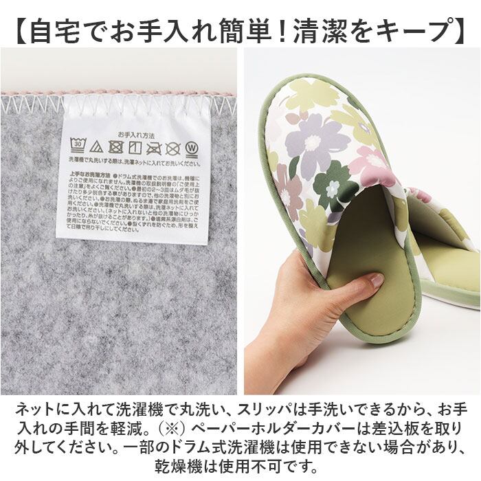 (※)ペーパーホルダーカバーは差込板を取り外してください。一部のドラム式洗濯機は使用できない場合があり、乾燥機は使用不可です。