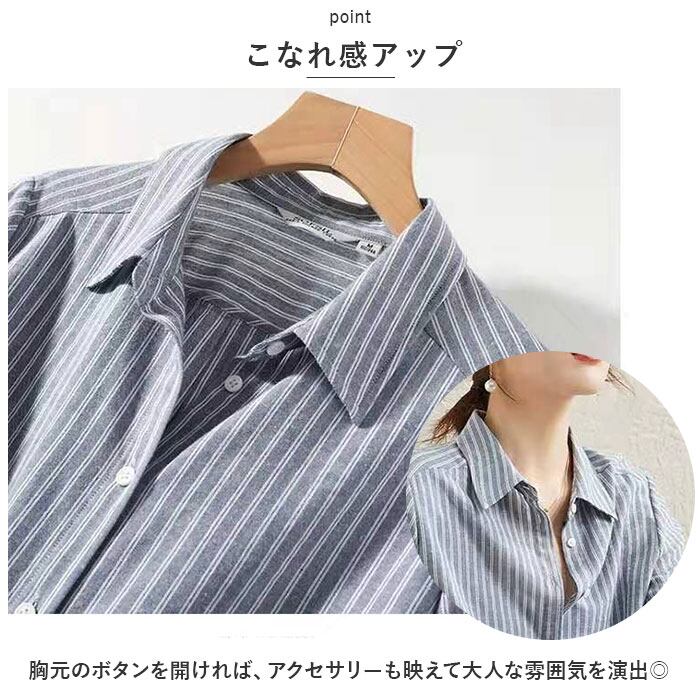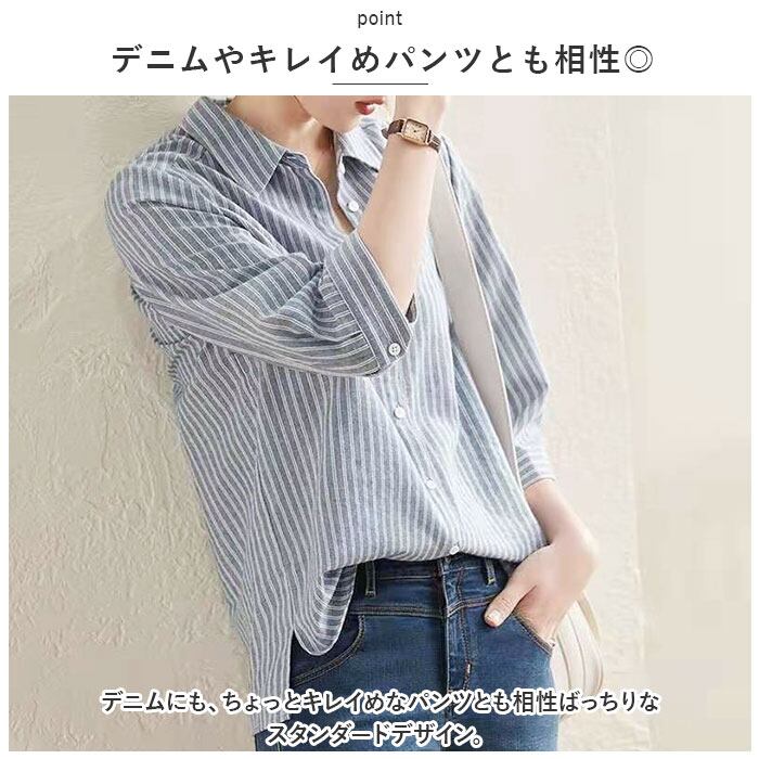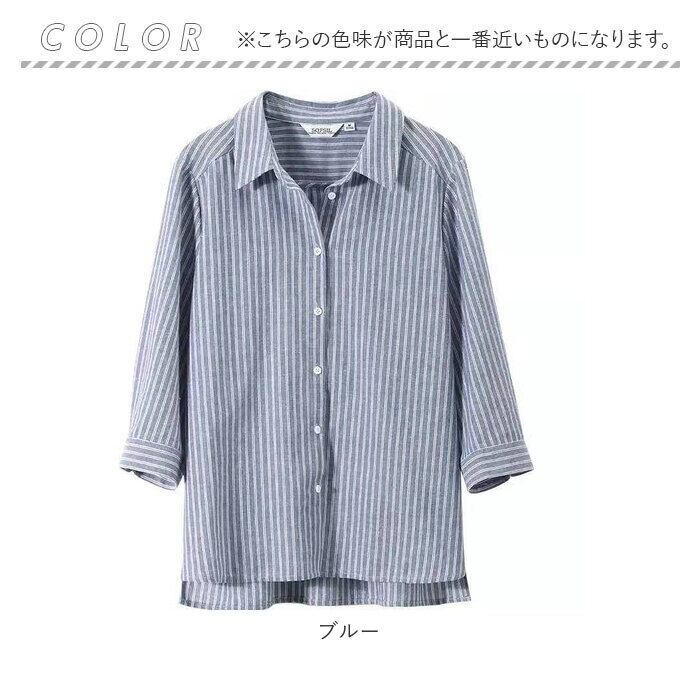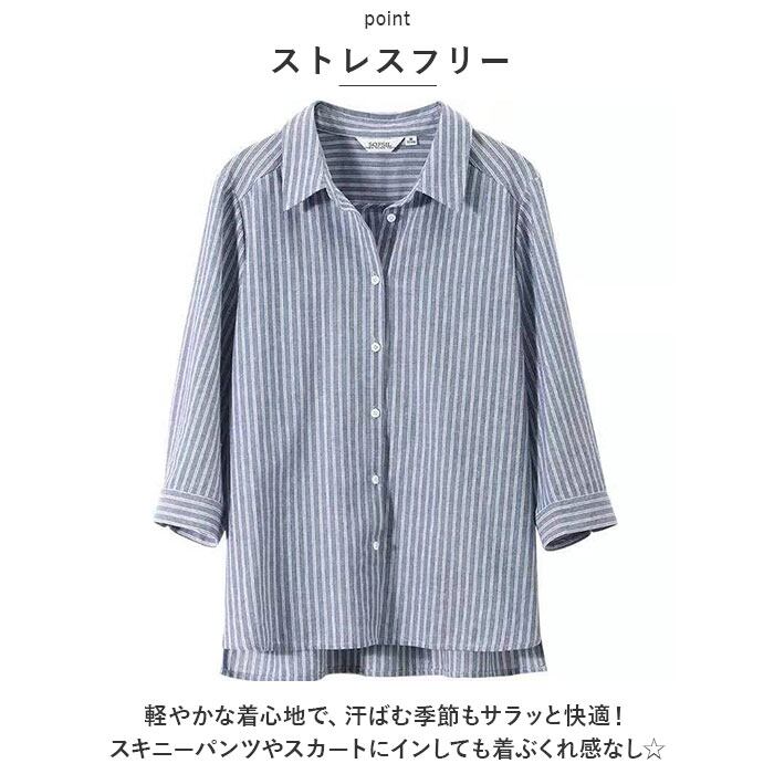 シャツ レディース 七分袖 ブラウス 通販 とろみシャツ とろみブラウス きれいめ 着痩せ ストライプ カジュアル ナチュラル 大人 かわいい オフィス ビジネス OL 春 夏 秋