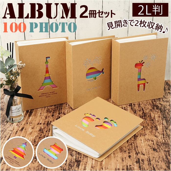 フォトアルバム 2L判 通販 ポケットアルバム アルバム 写真 2冊セット 2冊 大容量 100枚 ポケット式 ポケット 成長記録 結婚式 旅行 記念日 収納 フォトブック ベビー キッズ ミニアルバム 写真整理 出産 結婚祝い かわいい おしゃれ
