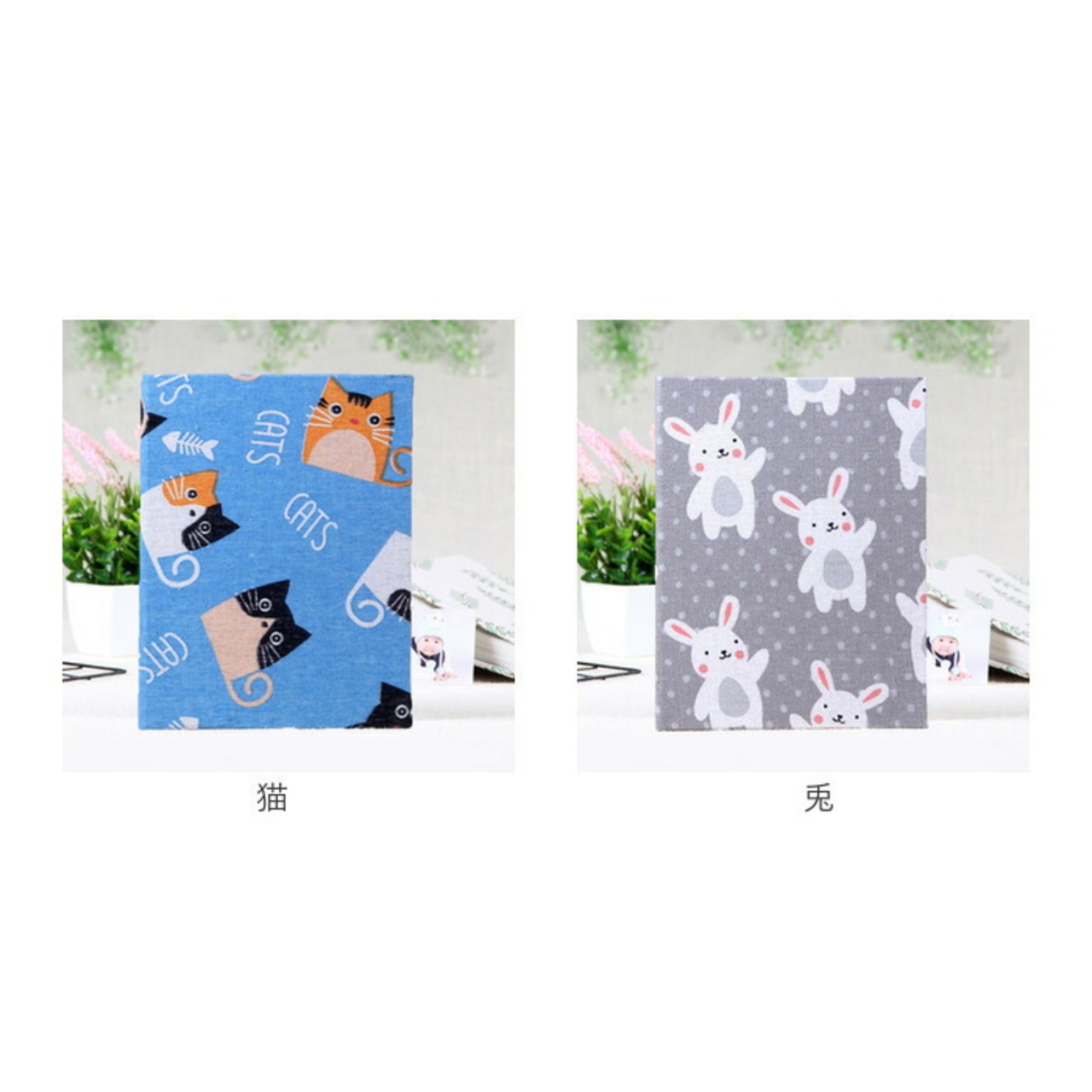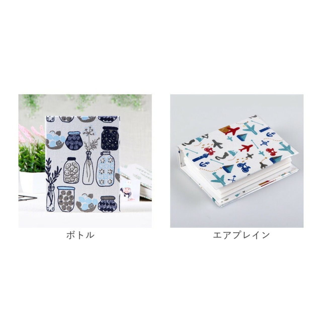 ・ボタニカルやアニマル柄のプリントがインテリアに素敵にマッチ!表紙はナチュラルなキャンバスファブリックで仕上げ、本棚やキャビネットに並べておくだけでお部屋がほっこり優しい雰囲気に。