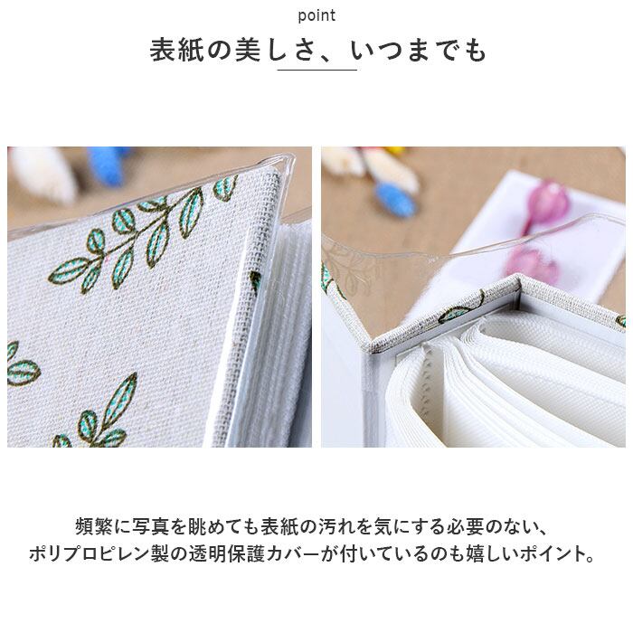 ・頻繁に写真を眺めても表紙の汚れを気にする必要のない、ポリプロピレン製の透明保護カバーが付いているのも嬉しいポイント。