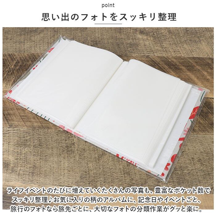 ・ライフイベントのたびに増えていくたくさんの写真も、豊富なポケット数でスッキリ整理♪お気に入りの柄のアルバムに、記念日やイベントごと、旅行のフォトなら旅先ごとに、大切なフォトの分類作業がグッと楽に。