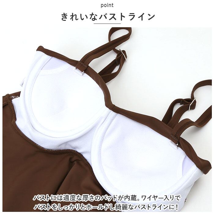 ・バストには適度な厚さのパッドが内蔵。ワイヤー入りでバストをしっかりとホールドし綺麗なバストラインに!