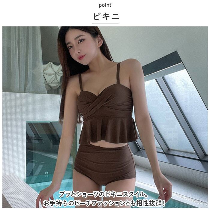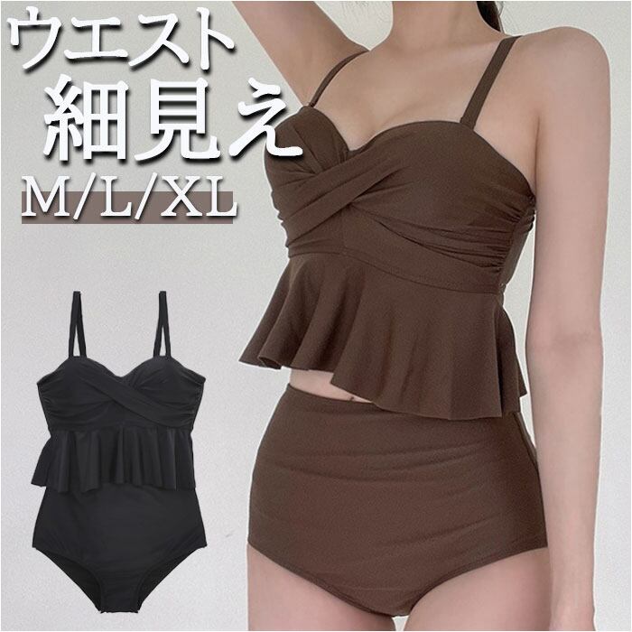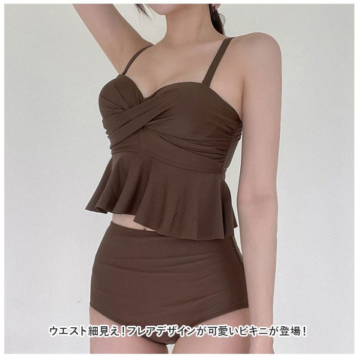 レディース 水着 フリル 通販 ビキニ タンキニ ツイスト ハイウエスト 体型カバー セットアップ 上下セット かわいい 露出控えめ ワイヤー 胸 おしゃれ ビーチ 海 プール