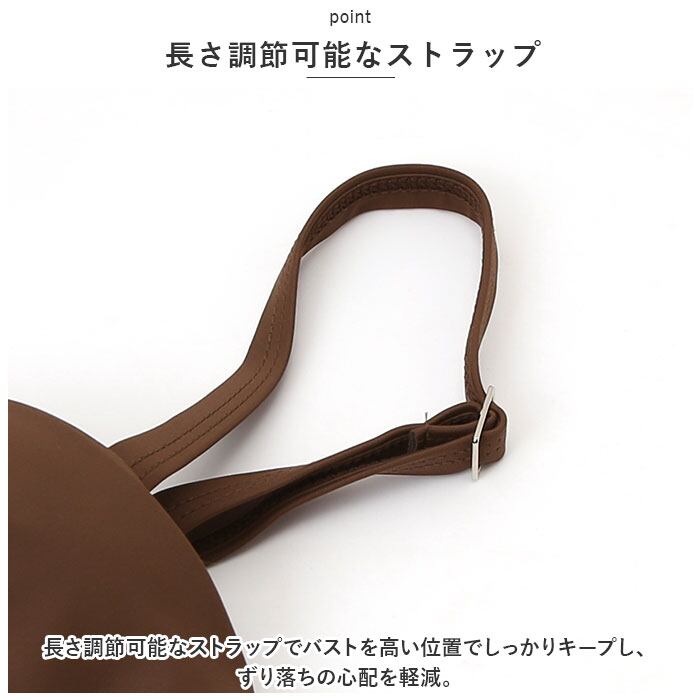 ・長さ調節可能なストラップでバストを高い位置でしっかりキープし、ずり落ちの心配を軽減。