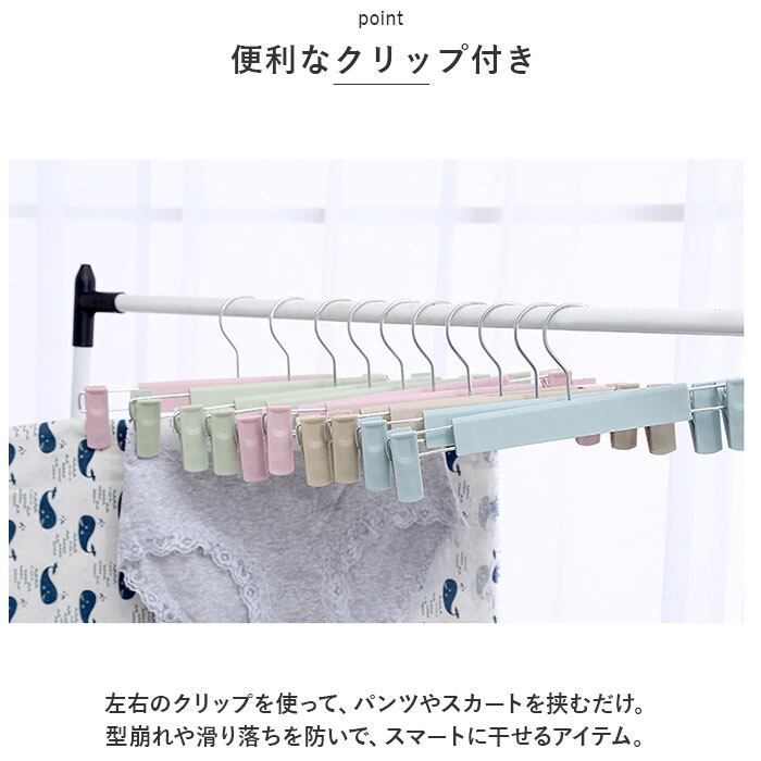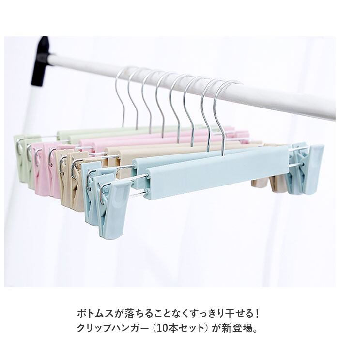 クリップハンガー 通販 スカートハンガー ズボン ハンガー 10本 セット 物干しハンガー 洗濯ハンガー ボトム スカート 滑り止め 乾湿両用 スリム 省スペース プラスチック 変形しにくい 衣類 収納 整理 クローゼット ハンガーラック おしゃれ かわいい