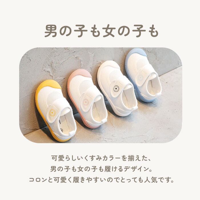 ・学年カラーのオーソドックスな上履きでは満足できないお洒落キッズに最適。くすみカラーのソールと「LOVE FOR MY BABY」のサークルロゴが印象的なアクセント。(※一部くすみカラーではないカラーの商品もございます。)