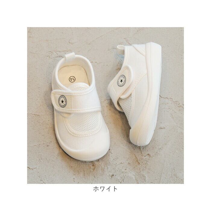 ・混雑する学校の昇降口でもスポッと履ける!面ファスナーベルトが足の甲にぴったりとフィットして、脱ぎ履きスムーズ。