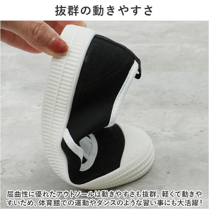 ・屈曲性に優れたアウトソールは動きやすさも抜群。軽くて動きやすいため、体育館での運動やダンスのような習い事にも大活躍!