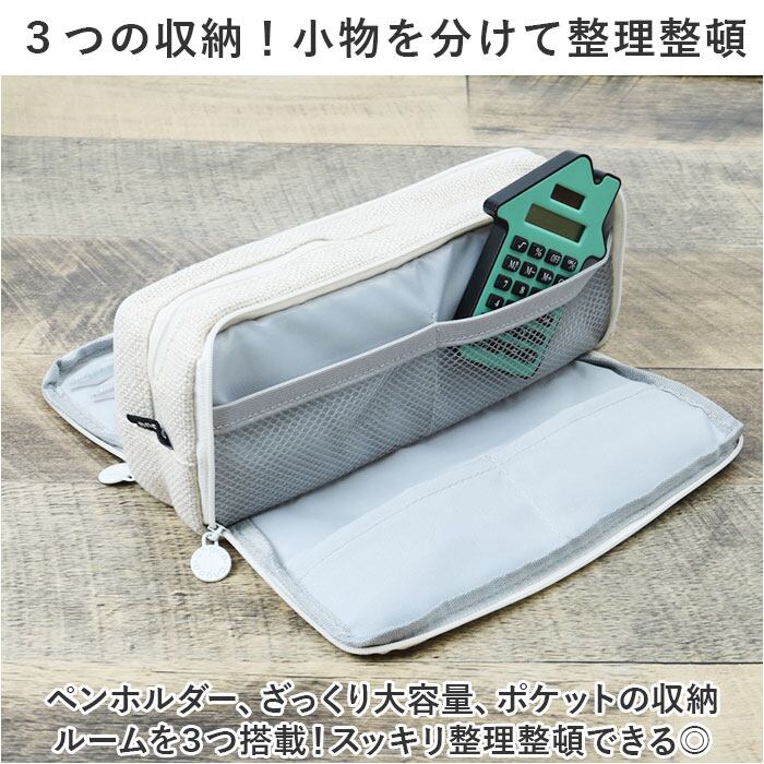 ・ペンホルダー、ざっくり大容量、ポケットの収納ルームを3つ搭載!スッキリ整理整頓できる◎